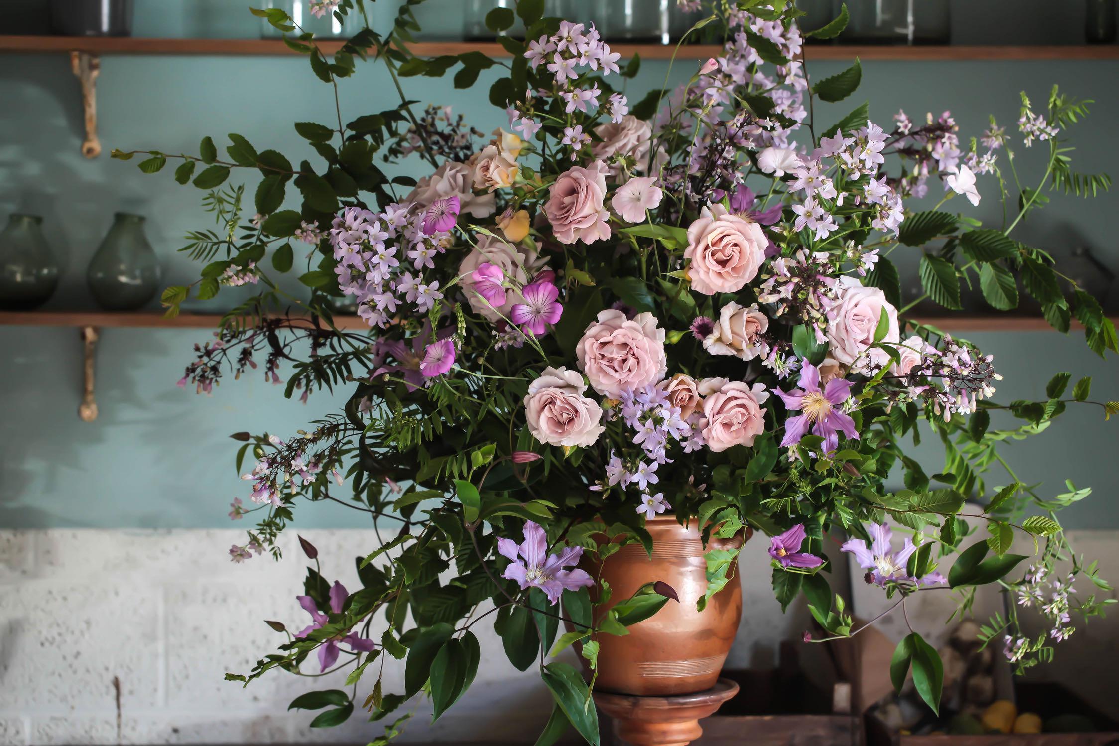 Summer gives way to autumn, and with it yet another change of pace. The russet hues of dahlias stand out against silver eucalyptus. Fruits and berries bring extra colour, while long feathery grasses add layers of texture.