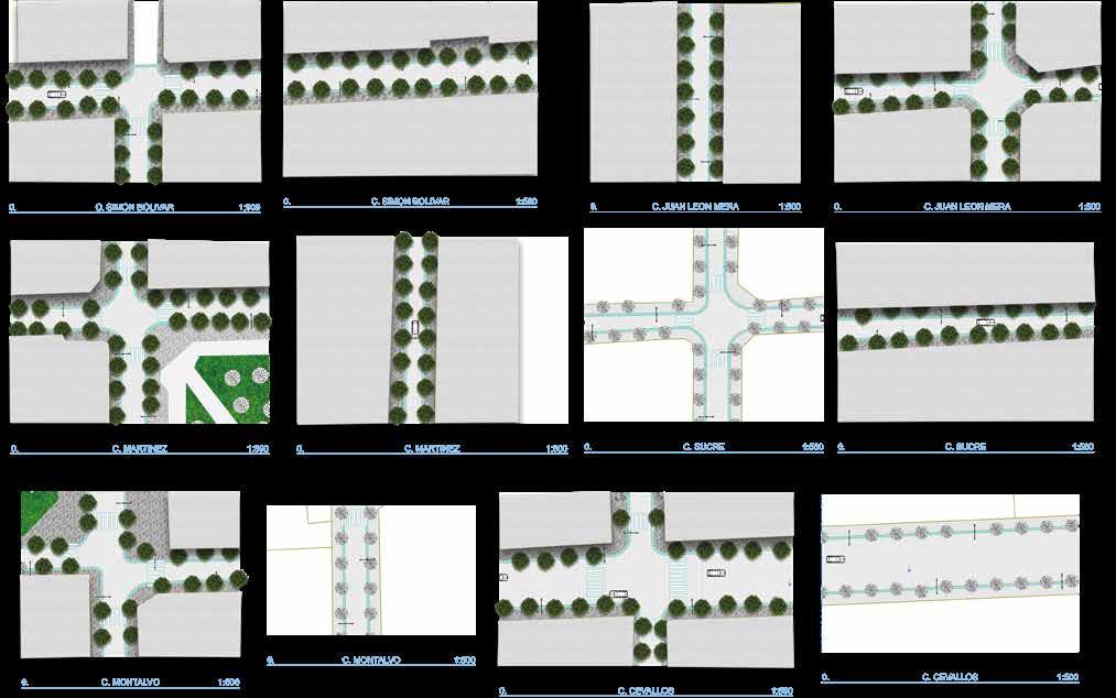 La propuesta consiste en generar una red identitaria que conecte los tres parques principales de Ambato, a través de un corredor verde con vegetación y mobiliario. Esta red vincula al Parque Montalvo, con el Parque 12 de Noviembre mediante las calles Juan Montalvo y Juan Benigno Vela, posterior vincula al Parque Cevallos mediante la calle Martinez y esta a su vez conecta con el eje prinicpal que es la calle Bolivar.