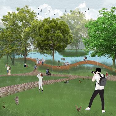 In our initial design concept phase, we explored various approaches to reimagine these spaces. We experimented with ‘pushing and pulling’ different areas, considering how modifications could address our goals—such fortifying ecological resilience, creating vibrant and inclusive community spaces and cultivating educational opportunities—each with varying emphases. This iterative process allowed us to develop focused strategies tailored to the park’s unique context and the community’s aspirations.