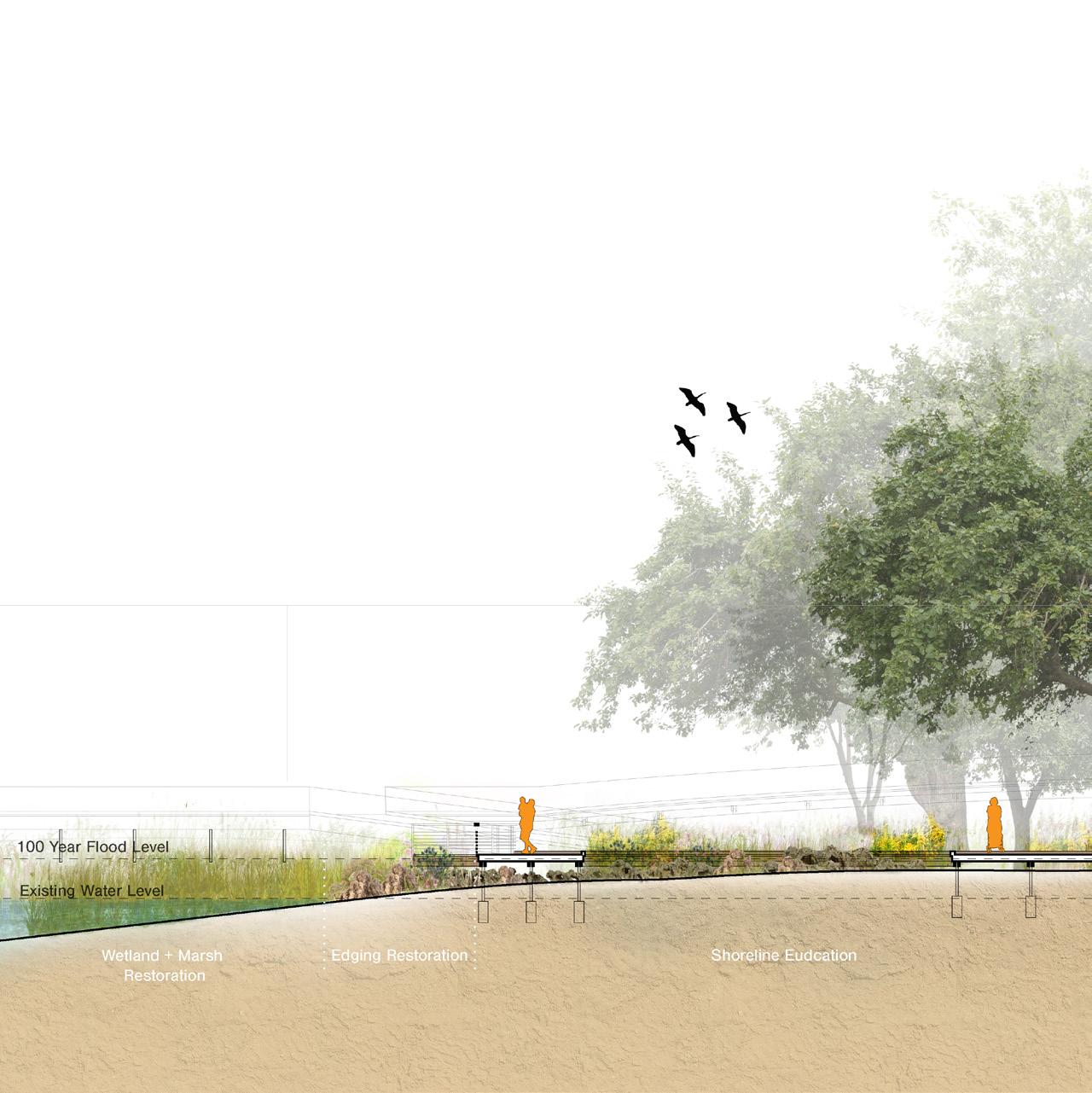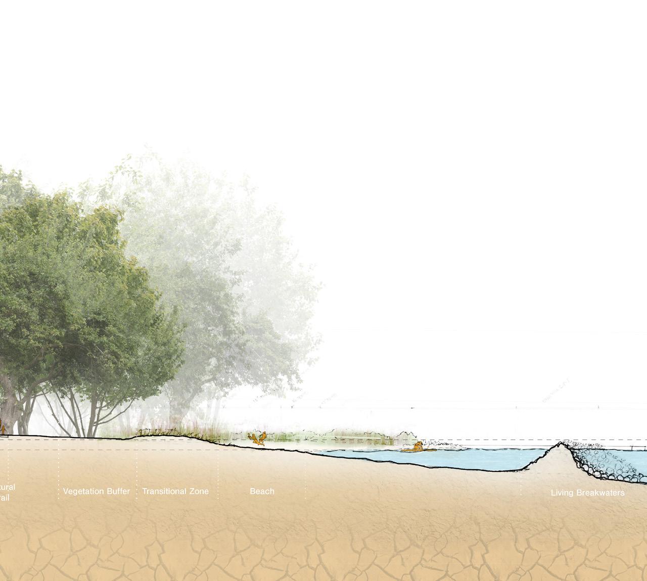 Create an immersive experience showcasing coastal life with diverse plantings that attract pollinators, support bird nesting, and highlight the interconnected coastal ecosystem.At,