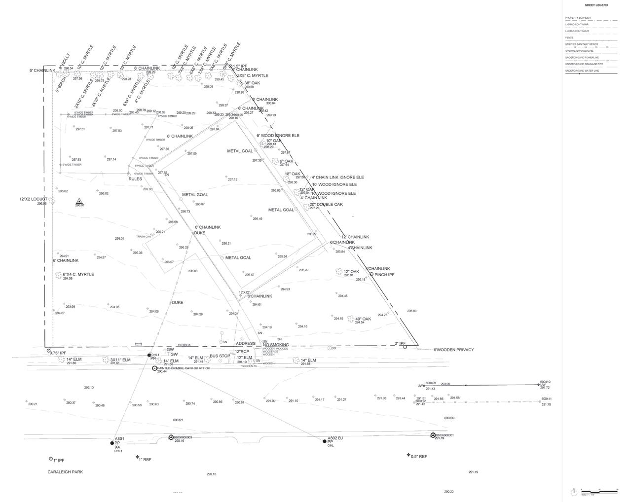 The City of Raleigh provided the existing site analysis and shared its goals to improve park access, update amenities, and, if funding allows, enhance the adjacent bus stop.