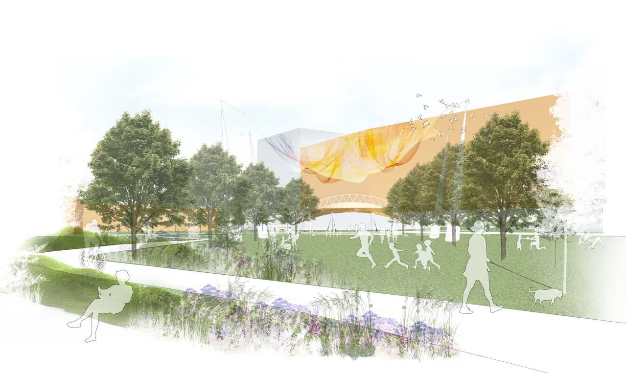 The resulting design envisions a welcoming and sustainable park that supports play, connection, and habitat creation.