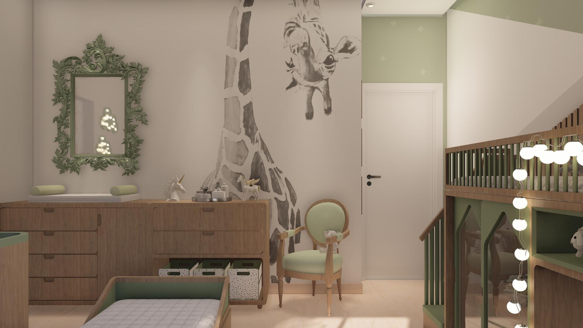 O quarto Safari é um projeto de interiores muito especial. Consistiu em um programa extremamente preciso. A demanda era a de que um quarto de hospedes passasse por uma transformação para se tornar um quarto de bebê. Com alguns poréns, esse quarto precisava ter uma cama de casal, um berço, uma cômoda de apoio para trocador e uma poltrona de amamentação.