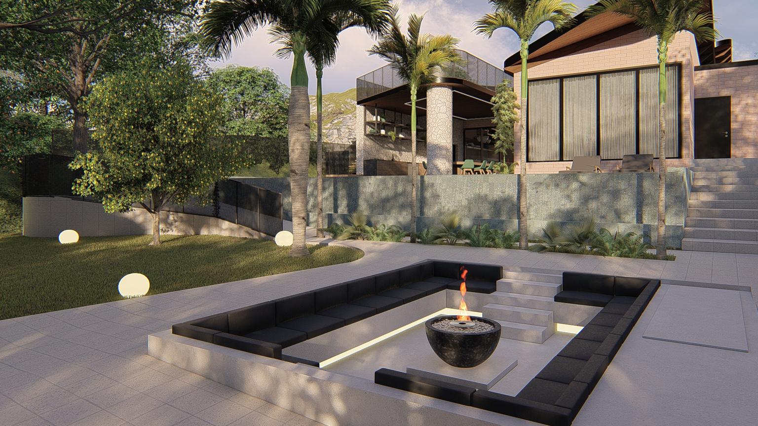 Composição cenográfica, humanização, paisagismo, materialização, iluminação, etc.