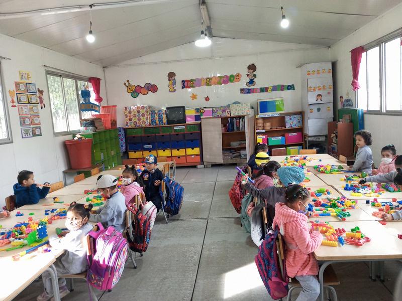 El aula se ha preparado como un espacio estructurado ya que la alumna autista presenta dificultades en ambientes poco definidos en los cuales no está claramente especificado qué es lo que se espera de él. La clase está dividida en rincones reservados para diferentes actividades.