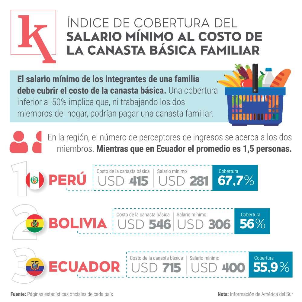 Finalmente, en junio de 2022 el costo de la Canasta Familiar Básica (CFB) se ubicó en USD 751,04, mientras que, el ingreso familiar mensual de un hogar tipo fue de USD 793,33, lo cual representa el 105,63% del costo de la CFB. Mercado laboral: En Ecuador el Instituto Nacional de Estadística y Censos (INEC) publicó los resultados de la Encuesta Nacional de Empleo, Desempleo y Subempleo (Enemdu) en la que se muestran los siguientes resultados: