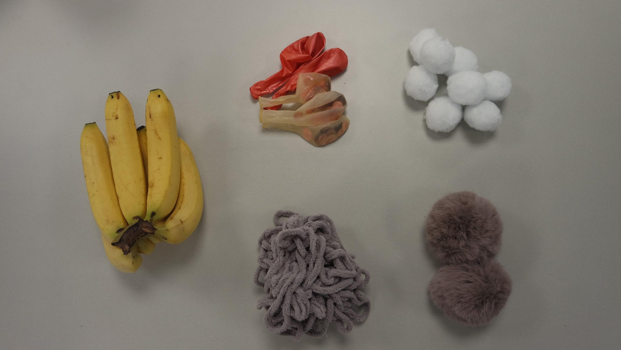 8 white small fur balls