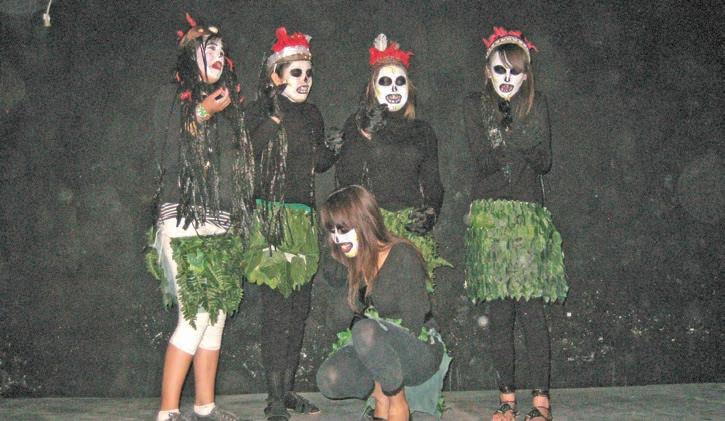 así como la realización de un vestuario muy creativo que incluía trenzas de rafia, escudos indígenas, arcos, flechas, plumas y hasta pieles de jaguar. Definitivamente la entrega de los chicos, así como su creatividad hizo de esta obra la delicia del público, que rió y aprendió de su historia. (Leticia Romo)