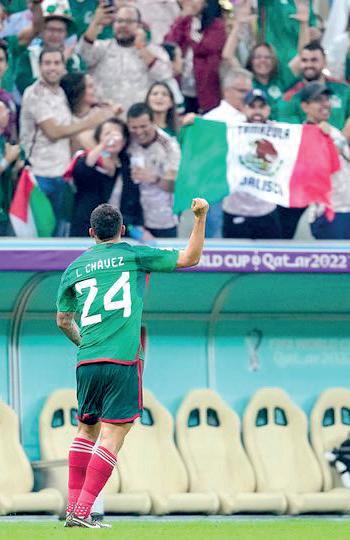 área mandó el balón al fondo del arco y alimentó la ilusión de la afición mexicana. Cinco minutos más tarde, ante la deses peración de los seleccionados nacionales, Luis Chávez anotó un golazo de tiro libre, el jugador del Pachuca firmó su séptimo gol como seleccionado en el momento más necesitado del combinado azteca. Hasta ese momento con el marcador 2-0, Mé xico empató en la tabla general del grupo C, los puntos y la diferencia de goles con Polonia, así todo se podría definir por acumulación de tarjetas amarillas, otro escenario nada favorable para el Tricolor, pues sumaban un total de siete tarjetones amarillos ante cinco de los polacos.