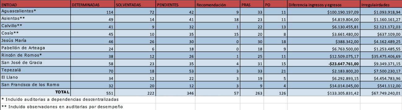El OSFAGS emitió 551 observaciones a los municipios y dependencias descentralizadas en el estado, 346 quedaron pendientes Tepezalá, Aguascalientes, Asientos y San José de Gracia son los municipios en donde más se quedaron observaciones pendientes a ser resueltas