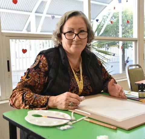 “Además de las clases de pintura, también participo en el taller de tejido, donde he hecho nuevas amigas. Aquí puedo platicar sobre mis problemas y encontrar apoyo. Es como mi terapia”, comparte Margarita con una sonrisa que refleja tranquilidad e ilusión.