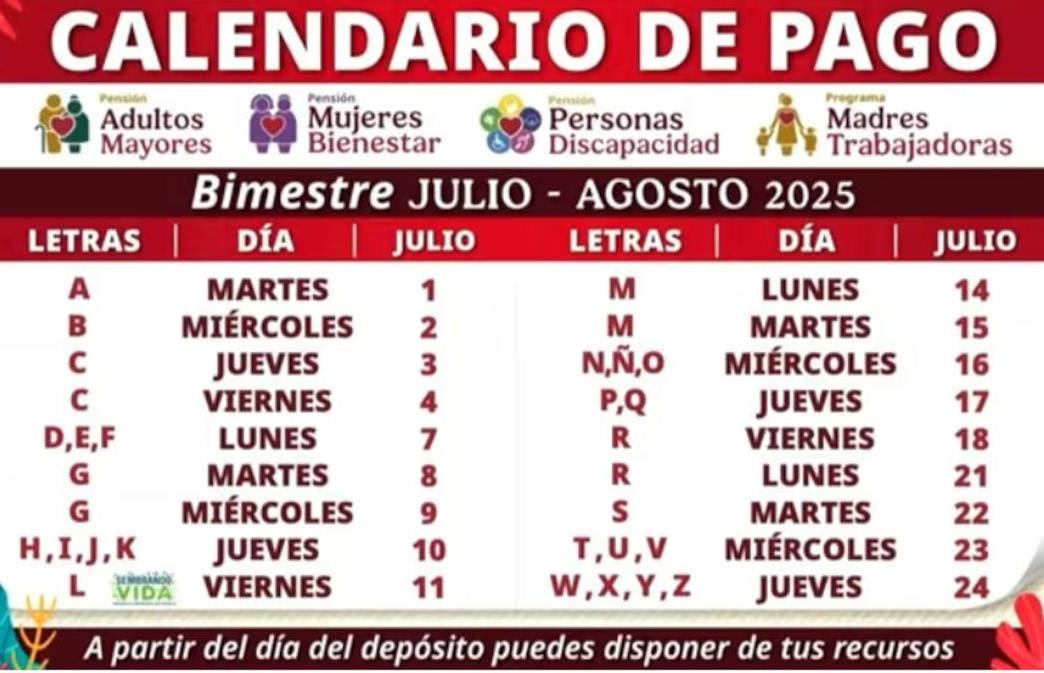 En la conferencia matutina: “Las mañaneras del pueblo”, que encabeza la presidenta de México, Claudia Sheinbaum Pardo, la secretaria de Bienestar, Ariadna Montiel Reyes, informó que 15.9 millones de derechohabientes recibirán el pago de Pensiones y Programas para el Bienestar correspondiente al bimestre julio-agosto, lo que representa una inversión social de 89 mil 584.6 millones de pesos (mdp). “Estamos llegando a 15.9 millones de derechohabientes de los Programas de Bienestar que van a recibir su apoyo, a partir del día de hoy, con el siguiente calendario: Iniciamos el día 1 de julio y vamos a concluir el día jueves 24. Recordar que es por letra del primer apellido para darles una atención adecuada, porque cada vez son más beneficiarios y derechohabientes de los Programas de Bienestar”, resaltó. Detalló que en el bimestre julio-agosto se dispersará la Pensión de Adultos Mayores a 12.7 millones de derechohabientes con una inversión de casi 79 mil mdp. Mientras que un millón 2 mil 58 mujeres reciben la Pensión Mujeres Bienestar con inversión social de 2 mil 575.9 mdp. “Quiero aquí hacer una precisión: hemos registrado a un millón 300 mil mujeres, pero 200 mil de ellas, ya cumplieron 65