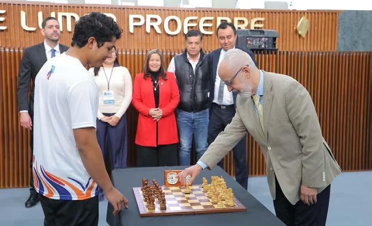 jóvenes. Resaltó que el ajedrez potencia habilidades cognitivas como la creatividad, el control emocional y el pensamiento profundo, competencias valiosas tanto en la competencia como en la vida diaria. Tras el acto protocolario, el rector realizó la primera jugada simbólica junto a Cristopher Amet García Pedroza, alumno del BACHUAA Norte. El joven compartió que su gusto por el ajedrez nació gracias a su primo y por el reto intelectual que implica calcular cada movimiento con estrategia; además, mencionó que se ha dedicado con constancia a la práctica de este deporte desde hace tres años. Para concluir, el IDEA entregó 50 tableros de ajedrez a la UAA con el propósito de fortalecer la práctica de esta disciplina dentro del catálogo deportivo institucional y seguir impulsando la formación integral de la comunidad universitaria.