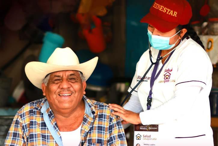 Precisó que Salud Casa por Casa fortalece las Pensiones para el Bienestar de las Personas Adultas Mayores y Personas con Discapacidad, asimismo, coadyuva a la detección temprana de padecimientos de las personas que reciben las consultas en sus domicilios, y ya cuentan con su historial clínico.