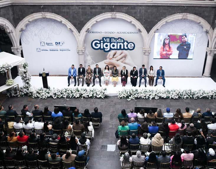 En una ceremonia llena de emociones y amor, encabezada por la gobernadora de Aguascalientes, Tere Jiménez, se celebró "Mi Boda Gigante", un evento donde más de 300 parejas formalizaron su unión al contraer matrimonio por la vía civil, lo que representa un gran compromiso y un paso importante en su vida en común. “Este día (28 de febrero) es una reafirmación del cariño y del amor; tengan mucha tolerancia y paciencia. Los felicito por esta etapa que inicia con la formalidad, para que sus hijos estén felices, crezcan y vean el amor como ejemplo”, les dijo la gobernadora.