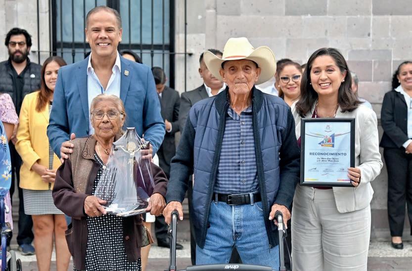 De esta manera, el presidente municipal de Jesús María, Antonio Arámbula López, así como la presidenta del Sistema Municipal DIF, Liliana Coronado de Arámbula, entregaron el reconocimiento al matrimonio más longevo, conformado por María López Herrera, de 89