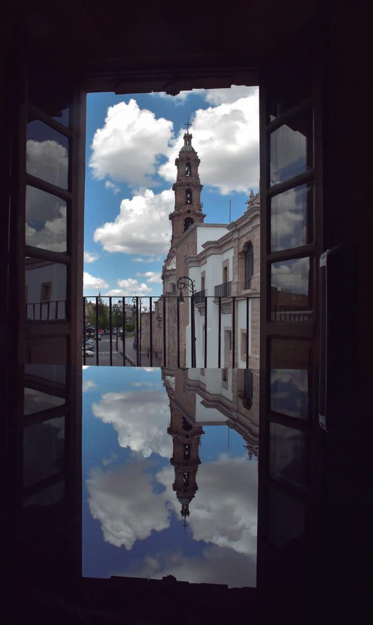 En fin, figuraciones aparte, en el centro de esta reflexión está la pregunta: ¿qué es lo que observa usted desde su lugar de trabajo? ¿Se siente afortunado con lo que tiene a su alrededor? Le pregunto porque durante poco más de año y me dio; poquitito más, este fue el paisaje que llenó mis ojos en las horas laborales, la torre de Catedral, y en primer plano la calle Moctezuma, a veces apacible, ge neralmente ruidosa y concurrida, el aire aderezado por las campanas y el reloj de la antigua parroquia de la Asunción… La calle Moctezuma y sus edificios dispare jos, los tinacos y las antenas, el banco, el Congreso del Estado, y en el fondo, como en la lotería, el antiguo edificio del Banco de Zacatecas y su vecino pétreo, la antigua Mercantil La Popular de Juárez y Madero, y más tinacos y antenas y alambres.