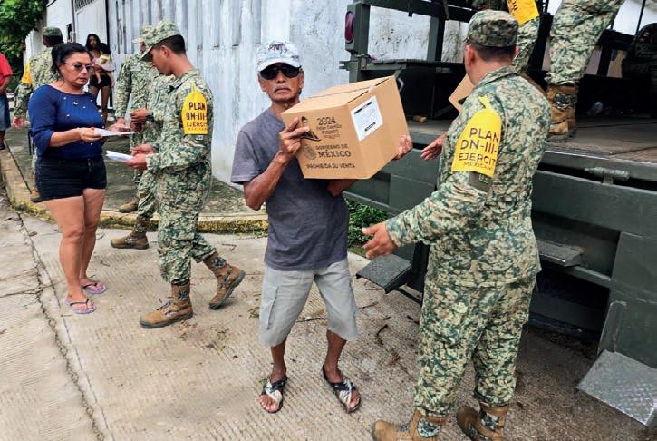 De acuerdo al informe, el despliegue de fuerzas armadas correspondió a 6 mil 404 miembros del Ejército y Fuerza Aérea y 7 mil 115 de la Guardia Nacional, “destacándose la participación del Batallón de Atención a Emergencias, la Fuerza de Apoyo para Casos de Desastre y la Fuerza de Tarea Conjunta México, quienes, con 775 vehículos, cinco plantas de energía eléctrica, 10 motosierras y nueve vehículos de maquinaria pesada brindan auxilio a la población a afectada”.