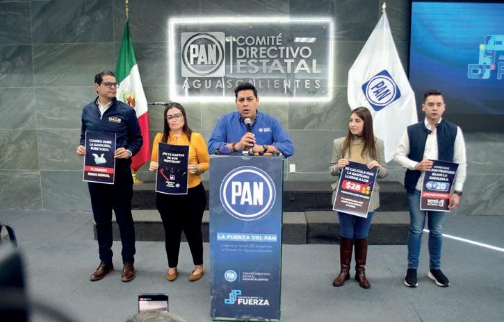 En rueda de prensa, las y los diputados federales del PAN por Aguascalientes, flanqueados por su presidente estatal, Javier Luévano, y su secretaria general, Paloma Amézquita, anunciaron propuestas que, según ellos, son la solución definitiva a los problemas del país . Bajo el noble argumento de que sí les interesan las familias mexicanas, lanzaron su más reciente promesa: bajar el precio de la gasolina.