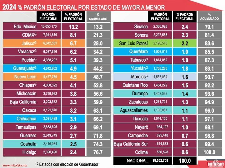 En Jalisco, el candidato por Movimiento Ciudadano, Pablo Lemus, alcanzó un rango del 42.5 al 45.1 por ciento; Claudia Delgadillo, de la coalición Sigamos Haciendo Historia, de 36.4 a 39.4 por ciento y Laura Haro, de la coalición Fuerza y Corazón por México, de 15.2 a 17 por ciento.