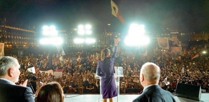 El presidente Andrés Manuel López Obrador celebró el triunfo de Claudia Sheinbaum Pardo, candidata presidencial de la coalición Sigamos Haciendo Historia (Morena-PT-PVEM) y electa el pasado 2 de junio como la primera presidenta de México con la votación más alta en la historia del país al obtener un rango de entre el 58.3 y el 60.7 por ciento de los sufragios.