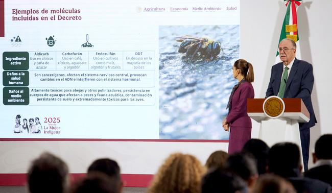 La presidenta de México, Claudia Sheinbaum Pardo, explicó que la prohibición cumple con un compromiso con el medio ambiente y a su vez para el cuidado de la salud de las y los mexicanos, además de que algunos de estos plaguicidas están prohibidos en muchas partes del mundo.