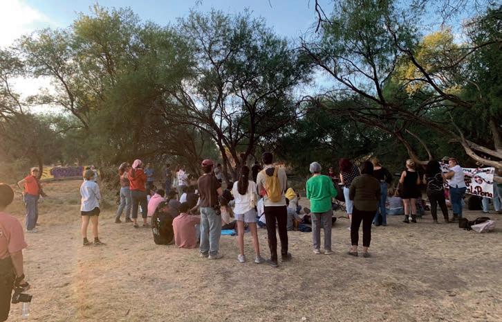 Durante una jornada más de defensa del predio natural conocido como La Pona, en Aguascalientes, la voz de la señora Floria López Torruco, médica jubilada del IMSS, se sumó al clamor ciudadano que exige preservar este espacio como un bien común. Desde su llegada, acompañada de su hija y su nieta Wendy Romina, compartió una reflexión profunda sobre el significado de este lugar para la ciudad y las futuras generaciones. “Es un pulmón para Aguascalientes”, expresó convencida. “Aquí se genera oxígeno y también agua, que tanto necesitamos. Es un elemento natural vital para la vida; por eso hay que defenderlo como sea”. A pesar de no vivir en la zona -reside en la colonia Jardines del Sur-, su presencia en la movilización es un acto de compromiso y conciencia colectiva.