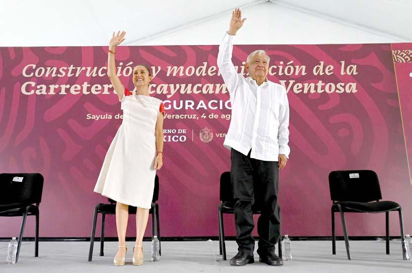 El presidente Andrés Manuel López Obrador y la virtual presidenta electa, Claudia Sheinbaum, estuvieron de gira este domingo por el sur de Veracruz para inaugurar la carretera Acayucan-La Ventosa y camino Minatitlán-Hidalgotitlán, que son parte del parte del proyecto del corredor del istmo de Tehuantepec.