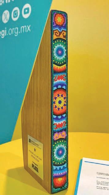 Marisol Schulz, directora general de la FIL, entregó al Instituto el reconocimiento que consistió en una pieza con motivos de arte Wixárika, propio de la cultura huichol. De acuerdo con el jurado, el equipo de inegi recibió la distinción, entre otras consideraciones, por “la labor que hacen de mostrarnos números y […] que nos parece a nosotros correcta, porque facilitan algo […] que comúnmente no es fácil digerir”.