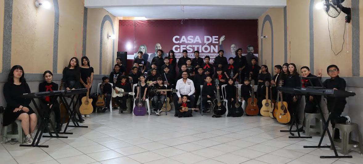 El Instituto de música de la Casa de Gestión, impulsado en Rincón de Romos por el diputado José Trinidad Romo Marín, ha logrado acercar a niñas, niños y adolescentes al aprendizaje de la guitarra, promoviendo la música como una alternativa para el desarrollo personal y la convivencia comunitaria.
