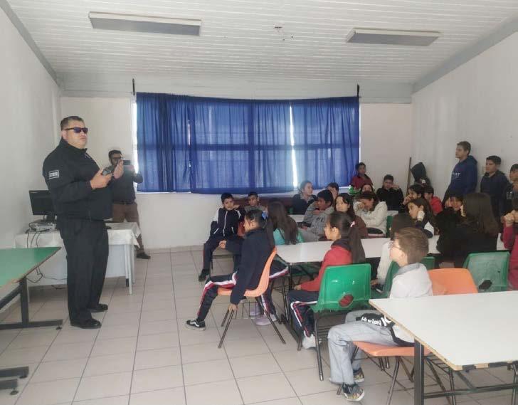 Imparten plátIca con estudIantes de calvIllo Como parte de las acciones informativas y educativas que realiza la Secretaría de Seguridad Pública del Estado, se realizó la plática con el tema “Menores Infractores” a estudiantes de la Escuela Primaria Adolfo López Mateos en la comunidad de La Fortuna, Calvillo.