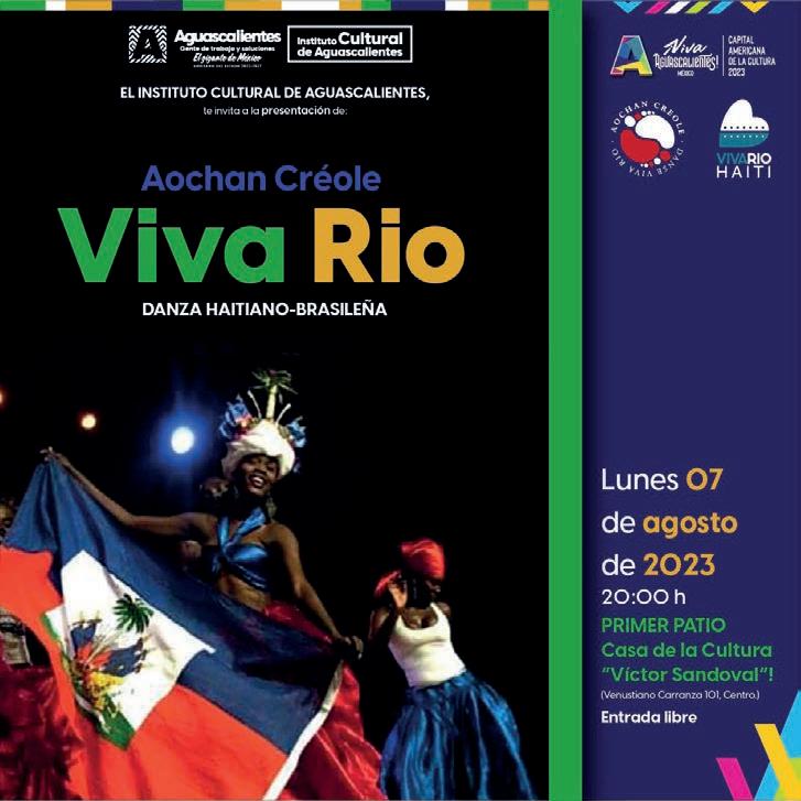 El Instituto Cultural de Aguascalientes invita a la presentación de Aochan Créole con el espectáculo Viva Rio, danza haitiano-brasileña; se llevará a cabo el lunes