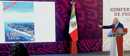 El presidente mostró la portada de Proceso de agosto: “Aquí está, el paraíso de los Bartlett en la ruta del tren Maya (…) qué tiene que ver el Tren Maya”.