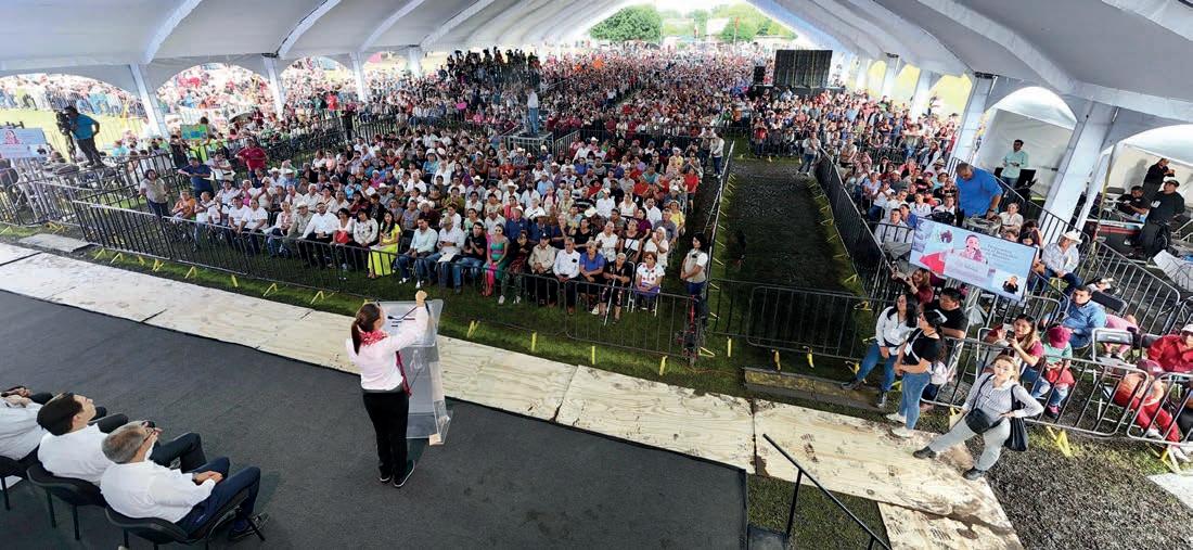 En la Unidad Deportiva “Manuel Alarcón”, ubicada en el municipio de Jantetelco, estado de Morelos, la titular de la Secretaría de Bienestar señaló que en el Segundo Piso de la Cuarta Transformación continuará bajo el modelo del Humanismo Mexicano con un gobierno austero. También acompañaron a la presidenta de la República: la secretaria de Medio Ambiente y Recursos Naturales, Alicia Bárcenas Ibarra; el secretario de Infraestructura, Comunicaciones y Transportes, Jesús Antonio Esteva Medina; el secretario de Agricultura y Desarrollo Rural, Julio Berdegué Sacristán; el secretario de Educación Pública, Mario Delgado Carrillo; la subsecretaria de Política Ambiental y Recursos Naturales, Marina Robles García; el subsecretario de Infraestructura, Comunicaciones y Transportes, Juan Carlos Fuentes Orrala; el director general de la Comisión Nacional del Agua (CONAGUA), Efraín Morales López; y el presidente municipal de Jantetelco, Ángel Augusto Domínguez Sánchez.