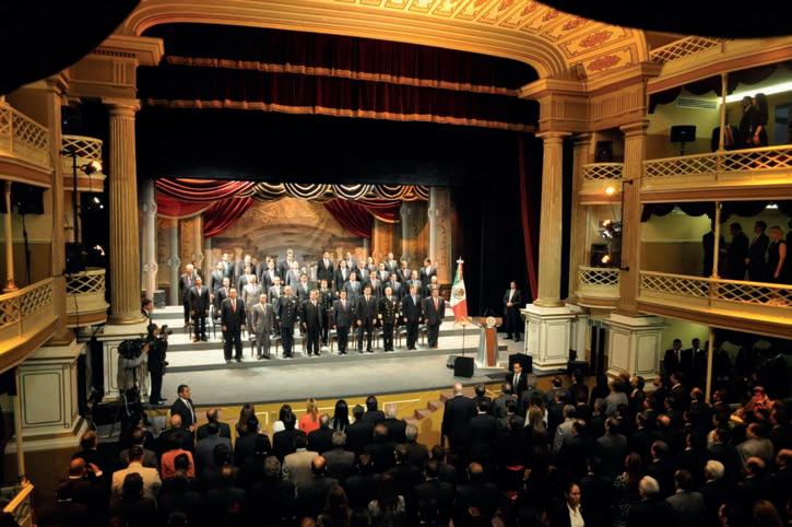 transición que se comprometiera a abrir más espacios de deliberación política y proyectos dirigidos a romper con la relación paternalista y opresora del partido del Estado con miras hacia el reconocimiento de la autonomía indígena”, según señala Martha Avalos Peláez. La imagen corresponde al acto conmemorativo del centenario de la Convención, encabezado por el presidente de la República, que tuvo lugar el 10 de octubre de 2014, en el Teatro Morelos. Felicitaciones, ampliaciones para esta columna, sugerencias y hasta quejas, diríjalas a carlos.cronista.aguascalientes@gmail.com