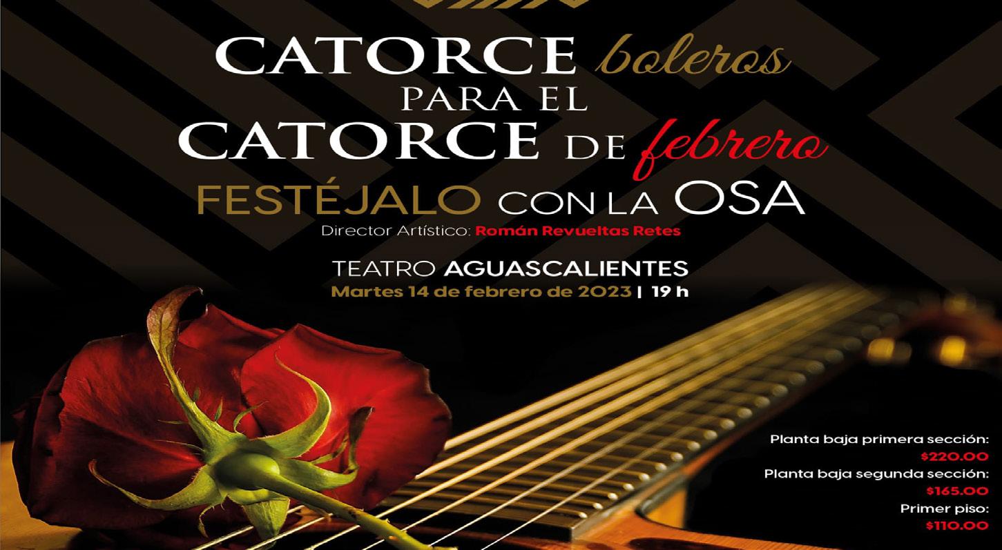 Con la Orquesta Sinfónica de Aguascalientes, que se realizará en el Teatro Aguascalientes a las 19:00 horas, para celebrar el día del amor y la amistad. En este concierto se interpretarán boleros del dominio popular con arreglos sinfónicos