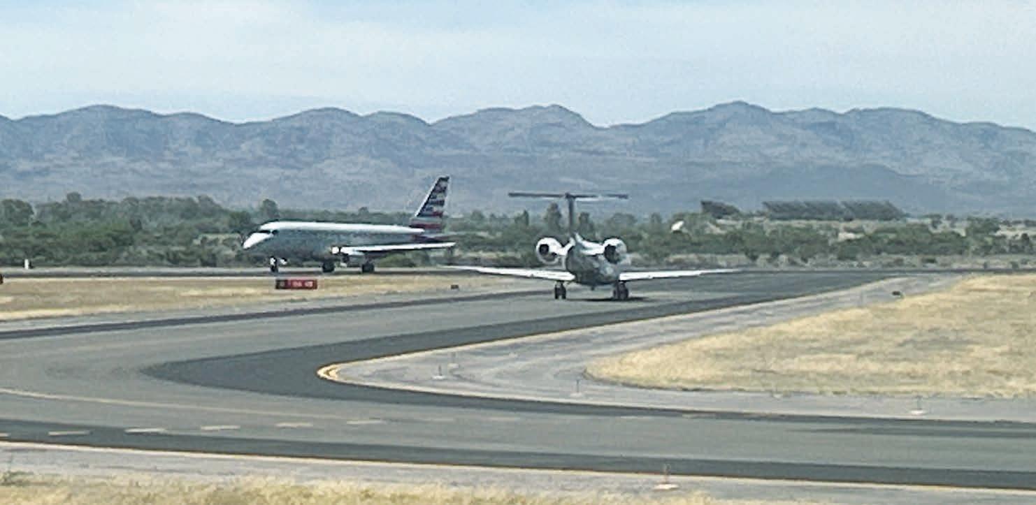 de Chava Flores, a la que le entregan “peso sobre peso, aunque no pasen de dos”. En la imagen, un Embraer 175 realiza el procedimiento que lo llevará al aire, en tanto otro, de la serie 145, espera para entrar en la pista y hacer lo propio. Felicitaciones, ampliaciones para esta columna, sugerencias y hasta quejas, diríjalas a carlos.cronista.aguascalientes@gmail.com