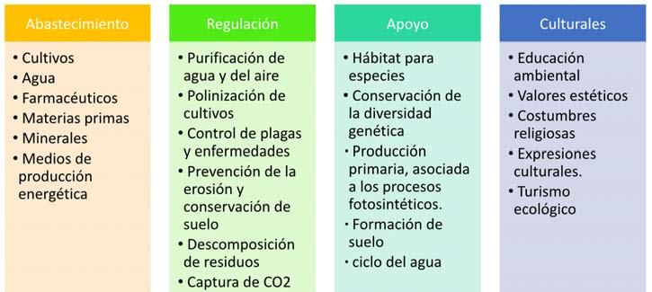Los servicios ecosistémicos se cLasifican en cuatro grupos, como se muestra a continuación:
