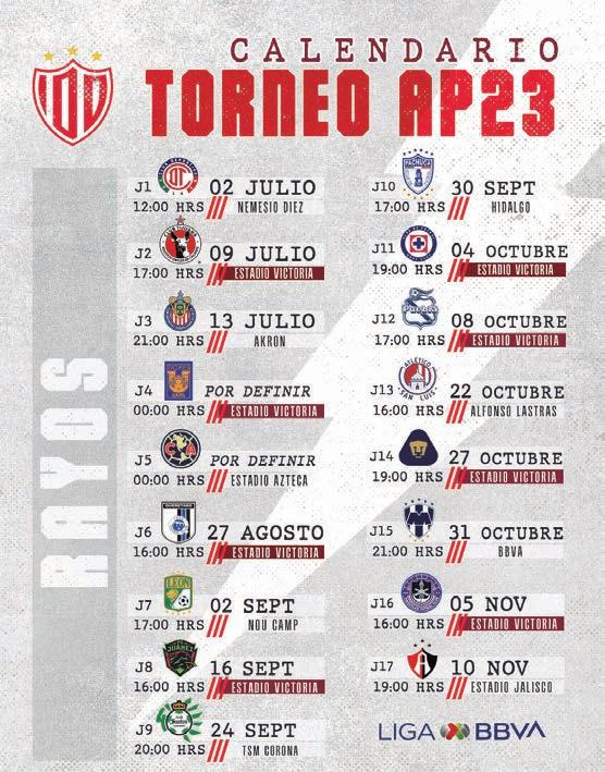 La Liga MX tendrá una pausa general por la Leagues Cup, en donde los Rayos estarán enfrentando en la fase de grupos a las escuadras de Charlotte FC y FC Dallas, militantes de la MLS. La competición internacional se disputará del 21 de julio al 17 de agosto, cuando se regrese a la normalidad en el torneo nacional. Tras la competencia internacional, los de Aguascalientes recibirán en el Estadio Victoria y en vísperas del festejo de aniversario a los actuales campeones del futbol mexicano, los Tigres de la UANL. Los Rayos culminarán la fase regular del torneo cuando visiten a su similar de Atlas.
