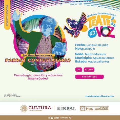 Este lunes 8 de julio en el Teatro Morelos a las 20:30 horas se presentará Parrot Contestatario con Los Weros Teatro, de Michoacán. Parrot Contestatario, un clown filósofo entrañable que nos recuerda lo necesario que es reír, hacerse preguntas e imaginar mundos distintos. Recomendada para niñas y niños de 8 años en adelante. La obra tiene una duración de 60 minutos. La entrada es libre. | Secretaría de Cultura