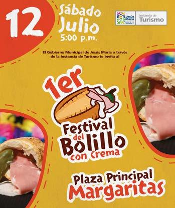 El Gobierno Municipal de Jesús María, a través de la Instancia de Turismo, invita a la ciudadanía al 1er Festival del Bolillo con Crema, que se llevará a cabo este sábado 12 de julio a partir de las 5:00 p.m. en la Plaza Principal de Margaritas.