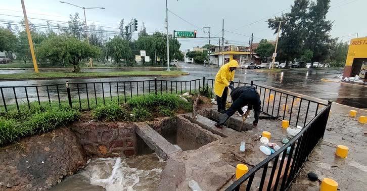Derivado de la intensa lluvia que se presentó la tarde de este lunes, oficiales del área de Protección Civil Municipal acudieron al canal ubicado entre calle Tauro y avenida Gabriela Mistral, en la colonia La Estrella, para retirar basura acumulada, con el objetivo de evitar mayores encharcamientos o inundaciones.