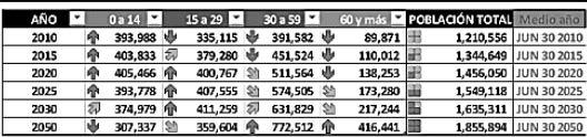 Vivimos ahora en poblaciones mexicanas con nuevos segmentos etarios que van de 0 a 29 años que contienen la infancia, adolescencia y juventud; un segundo bloque de 30 a 59 años que entrelaza a los jóvenes adultos con los adultos maduros, dedicadas a la vida productivo reproductiva y a la conformación del patrimonio, para luego dar paso a una tercera edad, cada vez más prolongada, de adultos mayores de 60 años, cuya esperanza de vida con buena salud bien puede superar las dos décadas.