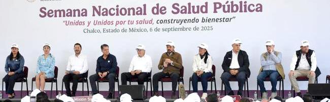 Con un llamado a la corresponsabilidad social y al cuidado colectivo, este 6 de septiembre se dio el banderazo oficial a la Semana Nacional de Salud Pública 2025 (SNSP), una jornada simultánea que se desplegará en los 32 estados de la República con miles de acciones gratuitas orientadas a prevenir enfermedades, detectar riesgos y construir comunidades más sanas. Bajo el lema “Unidos por tu salud, construyendo bienestar”, el evento congregó a autoridades de todos los niveles, organizaciones internacionales y representantes comunitarios.