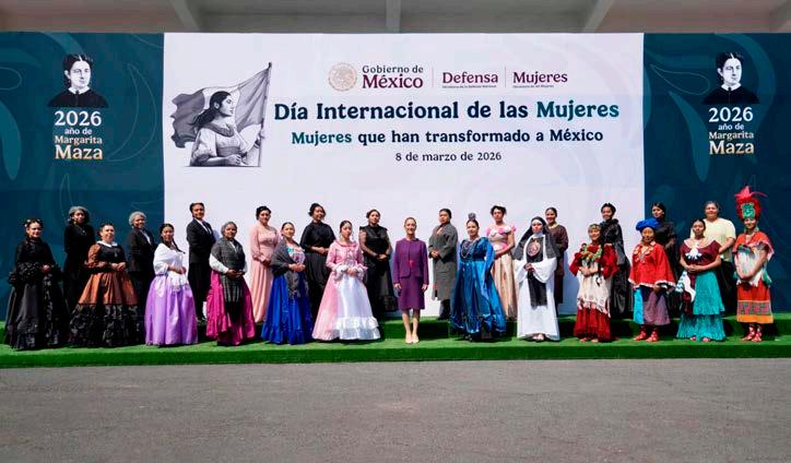 La comandanta suprema de las Fuerzas Armadas destacó que México tiene una historia profunda de mujeres extraordinarias tejedoras de la patria. Ejemplo de ello, en la Independencia: Leona Vicario, Josefa Ortiz Téllez-Girón, Gertrudis Bocanegra, Manuela Molina, Altagracia Mercado, Mariana Rodríguez del Toro; en la Reforma: Margarita Maza, Ignacia Riesch, apodada como La Barragana, y en la Revolución Mexicana: Carmen y Natalia Serdán, Dolores Jiménez y Muro, Hermila Galindo, así como Adela Velarde y cientos de mujeres más.