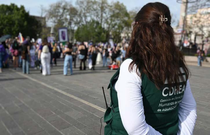 La Comisión de Derechos Humanos del Estado de Aguascalientes (CDHEA) llevó a cabo una serie de acciones orientadas a garantizar el derecho de reunión y manifestación de las personas asistentes a la marcha del 8 de marzo, en el marco del Día Internacional de la Mujer. Entre estas acciones se incluyeron capacitaciones dirigidas a las corporaciones policiales de las secretarías de Seguridad Pública estatal y municipal, asignadas al operativo, así como presencia institucional durante todo el desarrollo de la manifestación.