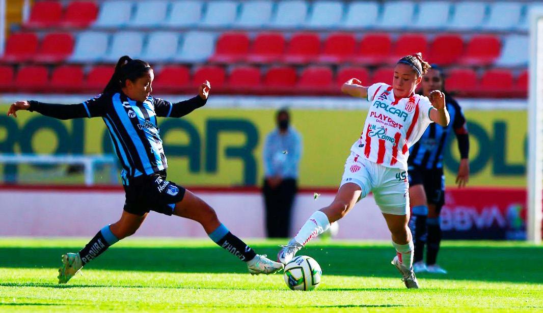 El equipo de Aguascalientes inició con mucha actitud el encuentro y por instantes se vieron jugadas muy prometedoras. A pesar del buen arranque de las necaxistas, las visitantes encontrarían al minuto 8 y en un tiro de esquina la opción para ponerse arriba en el marcador; Deysi Ojeda fue la encargada de mover las cosas en el Estadio Victoria. Tras la anotación las dirigidas por Jorge Gómez buscaron recomponer de inmediato el rumbo del partido, apretando intensamente a su rival, recuperando la pelota e intentando generar de buena manera la reconversión ofensiva para hacer daño a las queretanas. El ataque necaxista estuvo recargado en su mayoría en el costado derecho, sin embargo el pase entre líneas fue una herramienta que generó peligro en el área rival. Con la ventaja de su lado, las visitantes manejaron los minutos finales de la primera parte, provocando que el ritmo de juego disminuyera. Ambas escuadras se