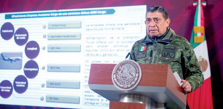 El secretario de la Defensa Nacional, Luis Cresencio Sandoval González, anunció que el gobierno federal instalará un centro de acopio en la Base Aérea Militar No. 1 en Santa Lucía, Estado de México; los víveres se enviarán a Turquía y Siria, países afectados tras el sismo de 7.8 registrado el pasado lunes.