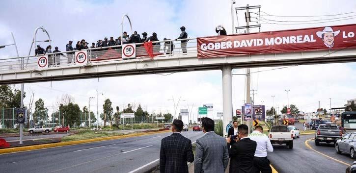 Los integrantes del colectivo colocaron, en el mismo puente, una loca con la leyenda: “4to informe Monreal +de 4 mil desaparecidos”.