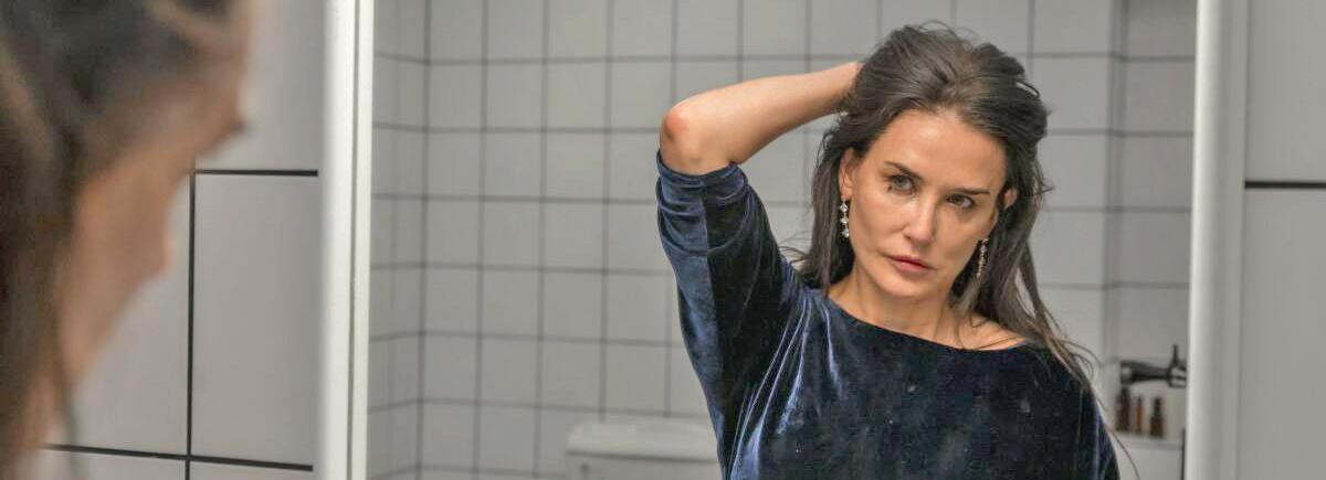 En la película de La Sustancia vemos a una actriz en el ocaso de su carrera artística en donde representaba a un figura de la televisión, interpretada por la bella Demi Moore, este filme extiende de manera dramática y terrorífica el cómo a través de una sustancia la actriz principal puede clonarse en una versión más joven que sí encaje con la sociedad del espectáculo bajo los estándares insulsos de belleza que pretende un medio que comunica para una audiencia que busca la agonía del eros, lo explícito y el sobre entretenimiento.